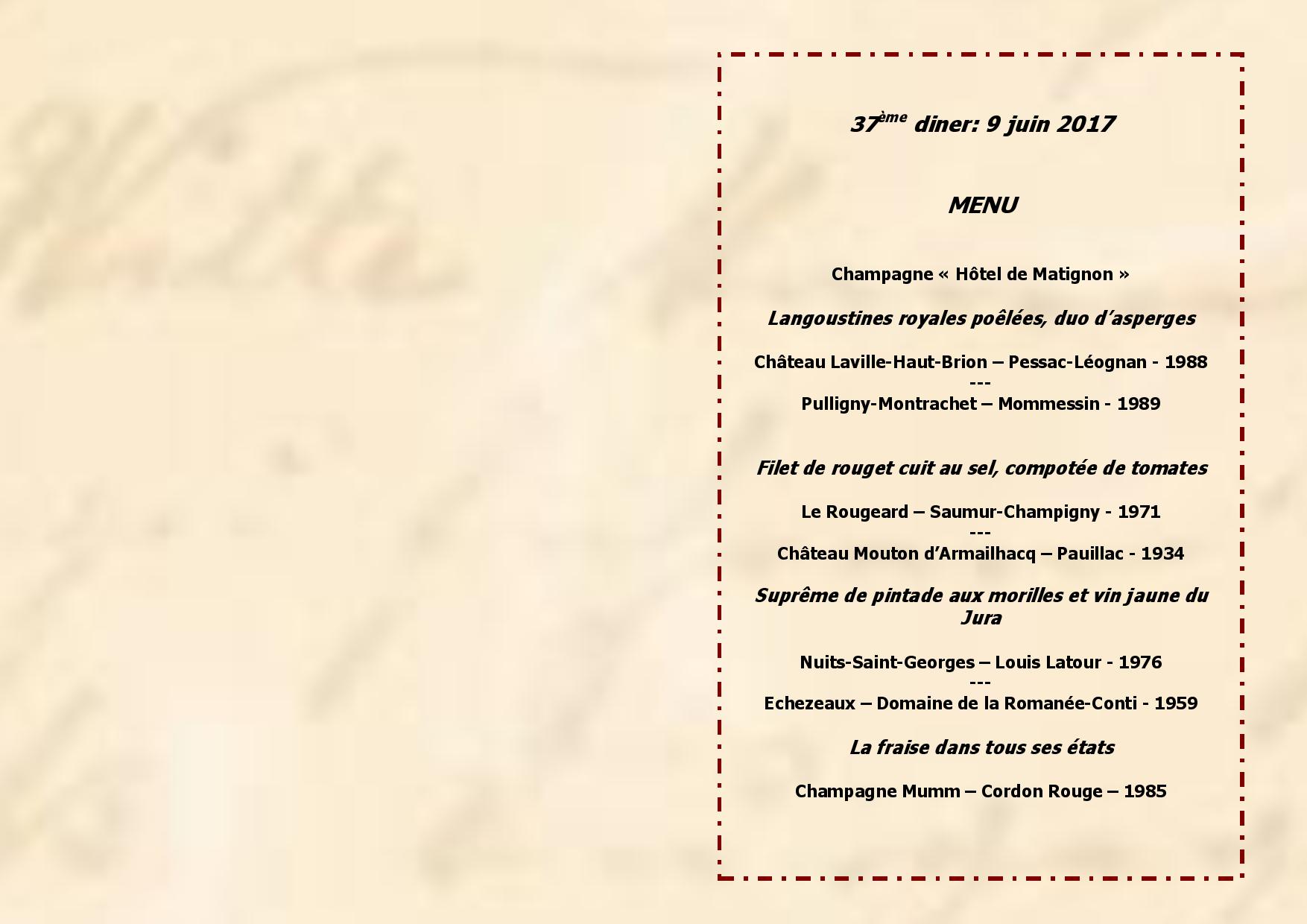 Menu 29ème dine...