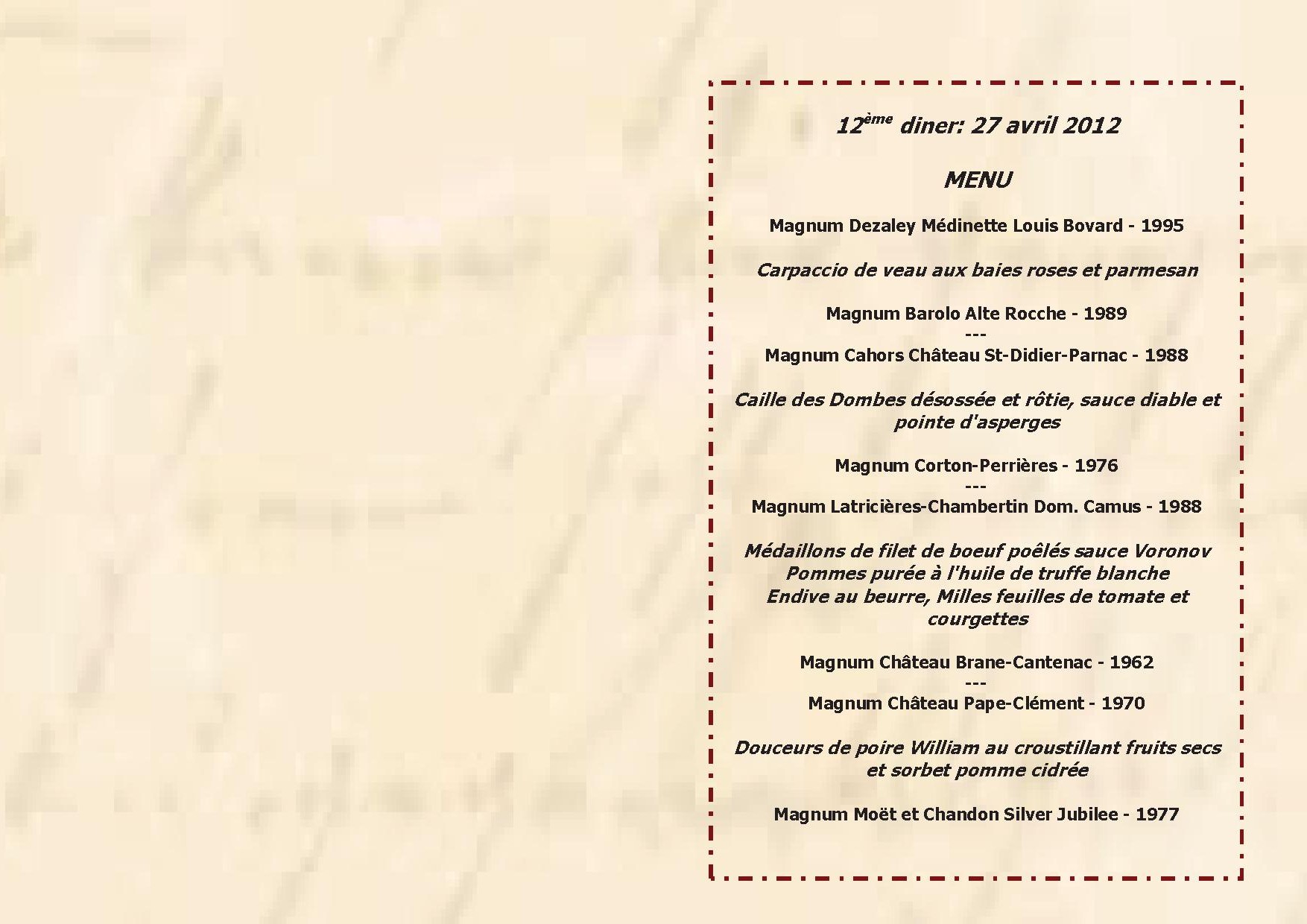 Menu 12ème diner