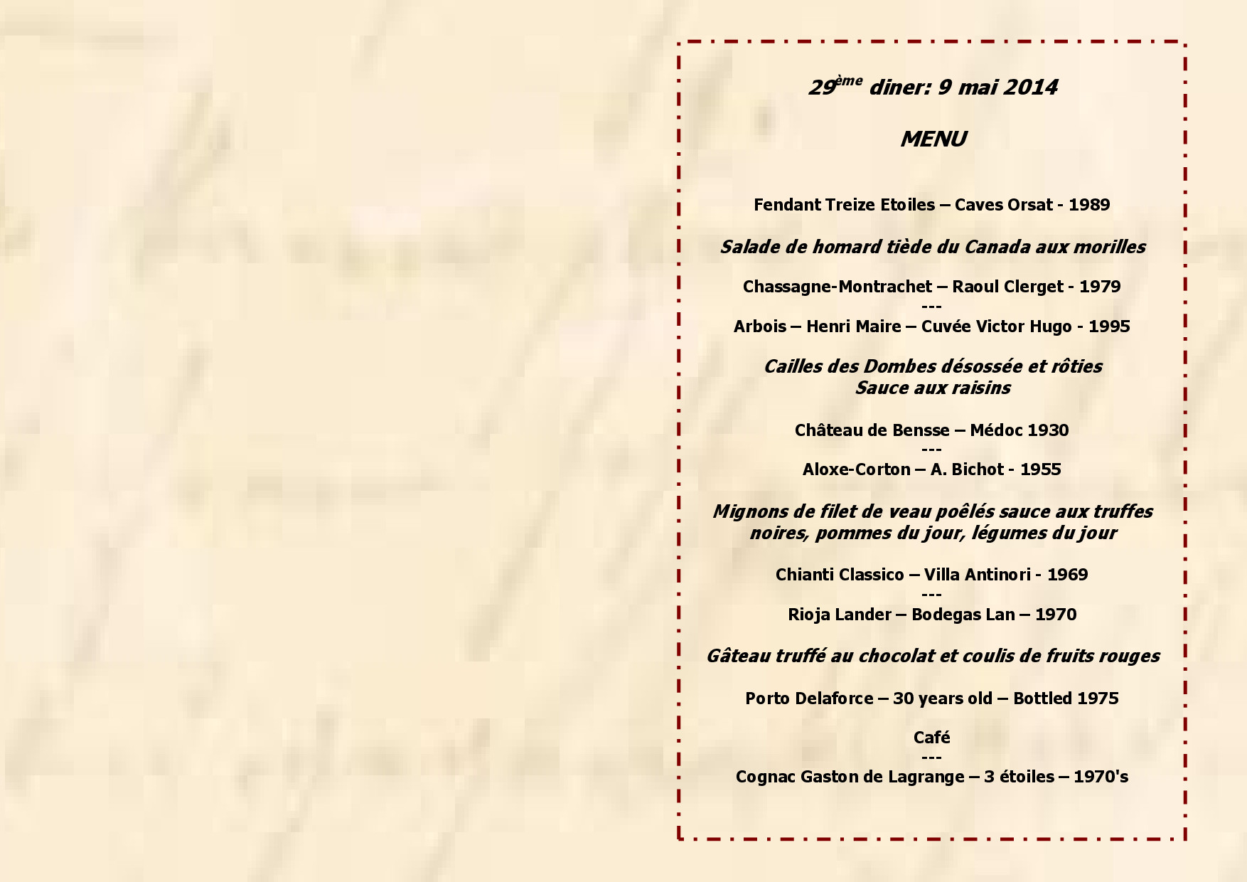 Menu 29ème dine...